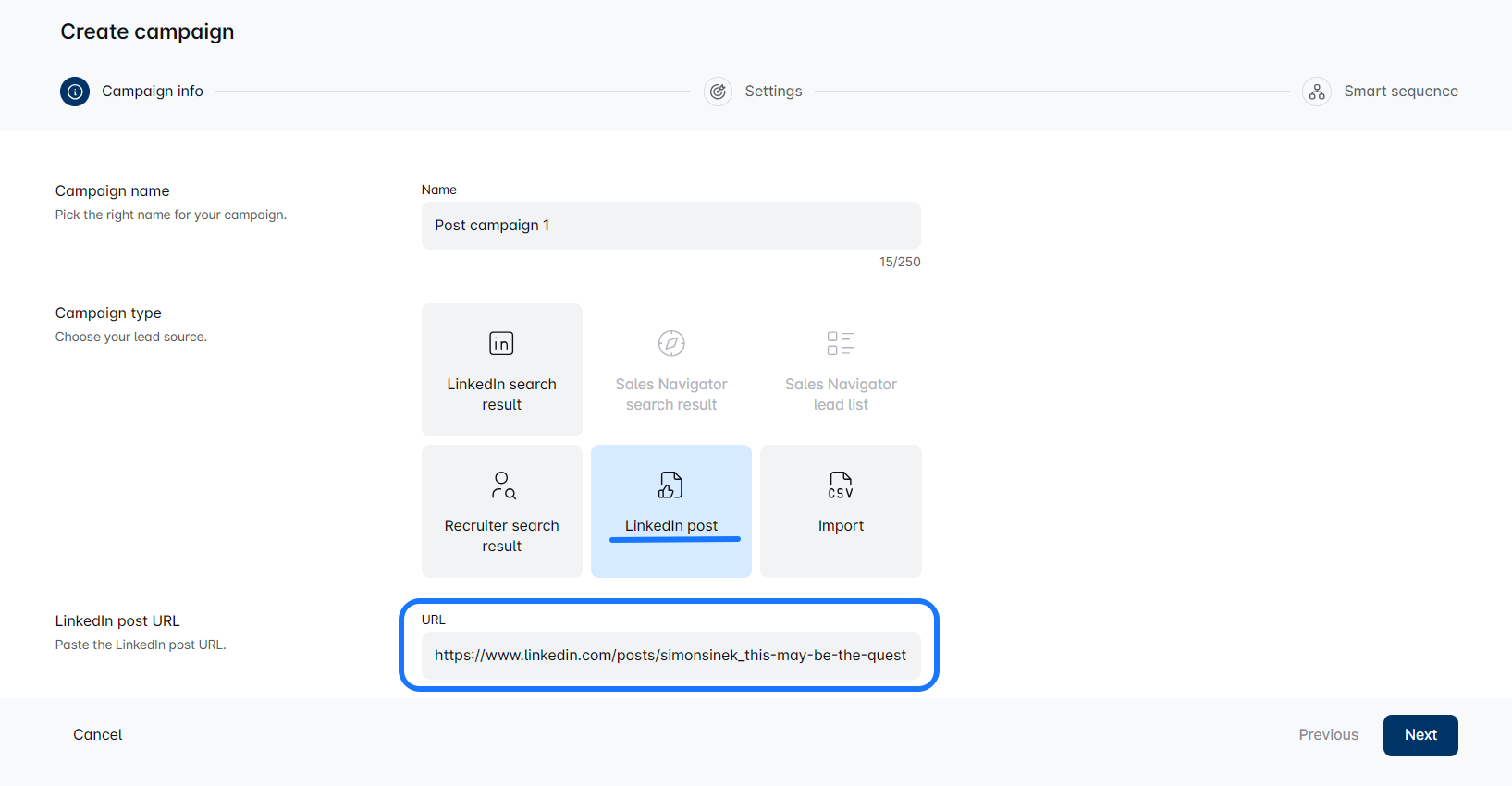 One of the big perks of a Post Engagement campaign is that it allows for super personalized outreach to your leads. 💌 You’ll be able to connect in a meaningful way like never before.