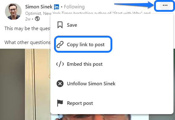 Once you've found the post, click the three dots in the top right corner. From the menu that appears, select 'Copy Link to Post'. Easy, right? 📎