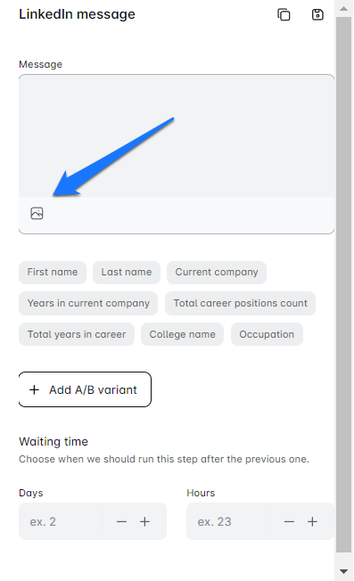 - For email messages, choose where to insert your image or GIF. For LinkedIn messages and InMails, SCALEUP will place your personalized images and GIFs at the bottom of the message.