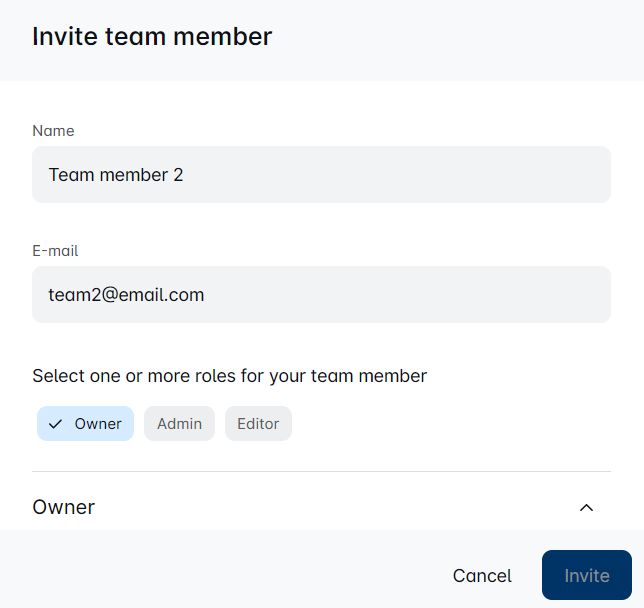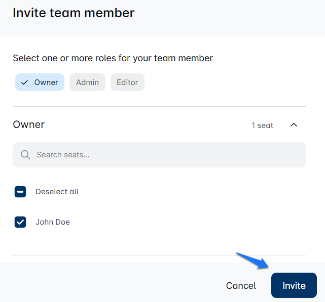 When inviting a new Team member, you’ll select their role—just like picking the perfect player for your sports team! 🏅