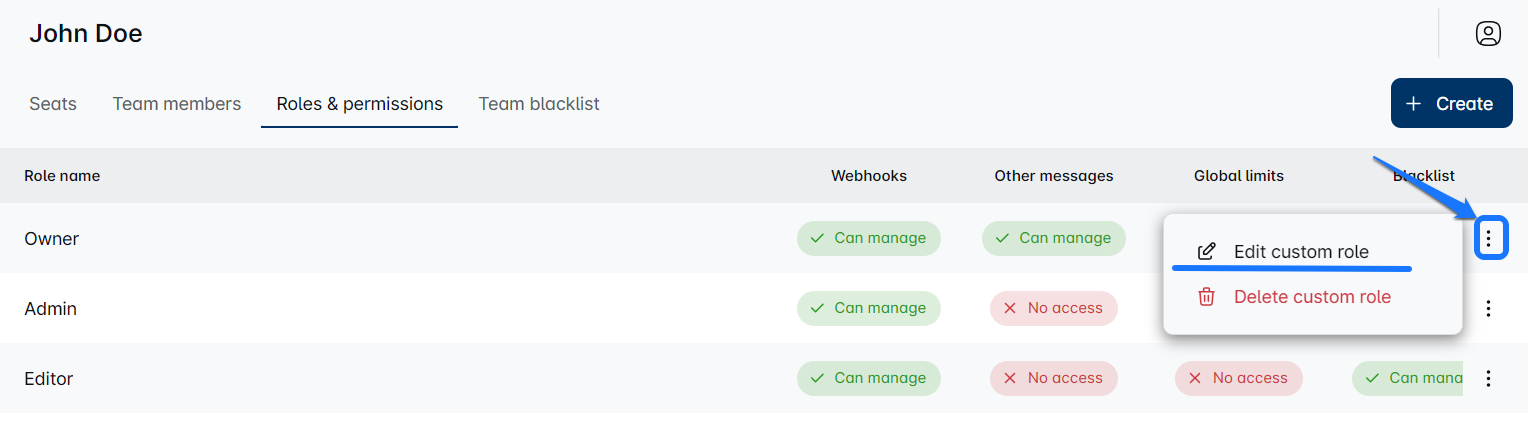 Choose from standard Team roles or create Custom roles to match your team’s needs. Assign seats, manage specific permissions (such as blacklist control), and update roles according to current needs as your team evolves. Perfect roles make for smooth teamwork. Enjoy managing! ✨💼