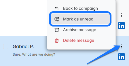 This is the default view of the inbox, where you can see messages from all the campaigns you’ve run on the SCALEUP. You’ll also get a glance at messages from all three inboxes that the Smart Inbox merges: LinkedIn, Sales Navigator, and Email 📧.