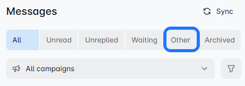 Once you connect your LinkedIn profile to the SCALEUP, this filter shows your non-campaign-based messages. ❗ Messages sent before connecting your account won't appear here.